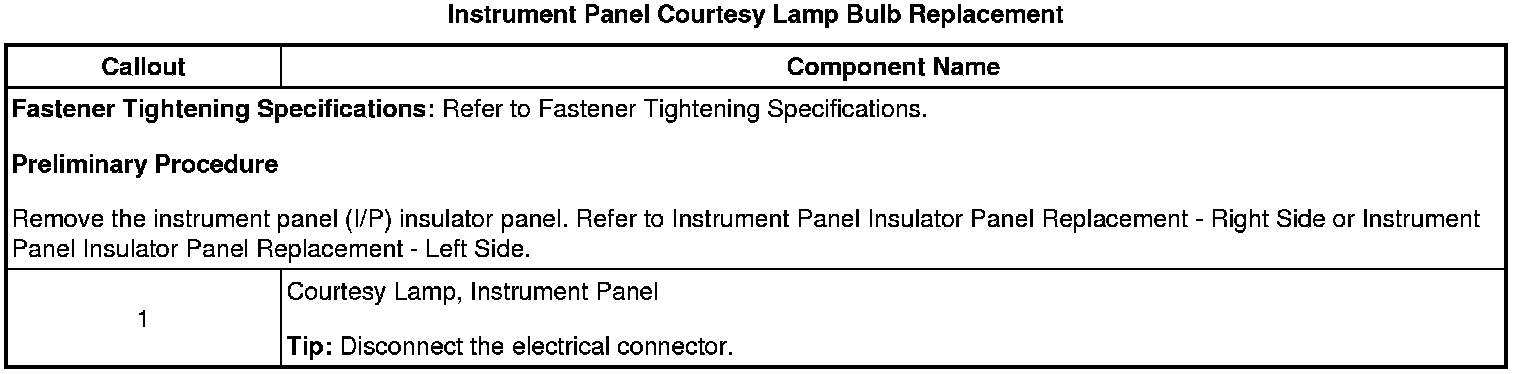 Instrument Panel Courtesy Lamp Bulb Replacement