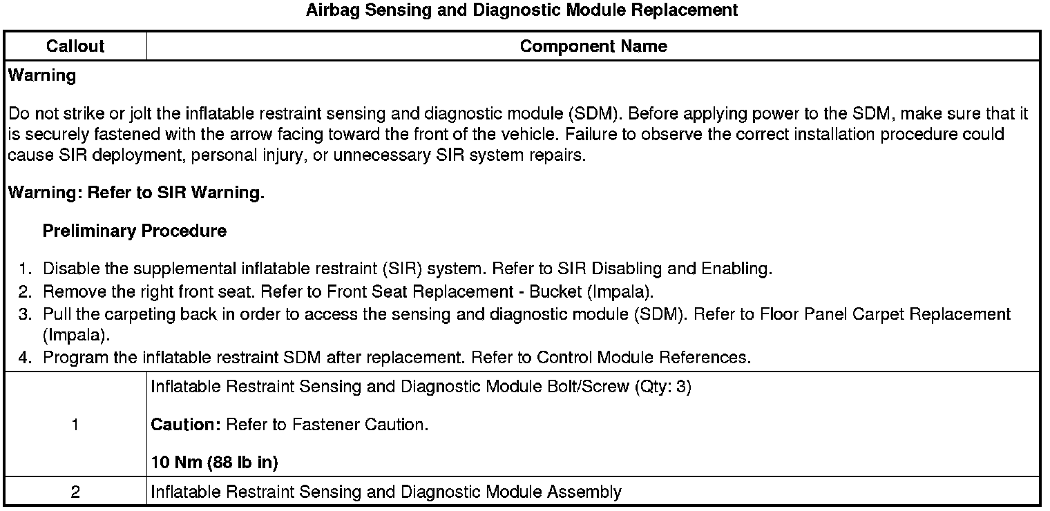 Airbag Sensing and Diagnostic Module Replacement