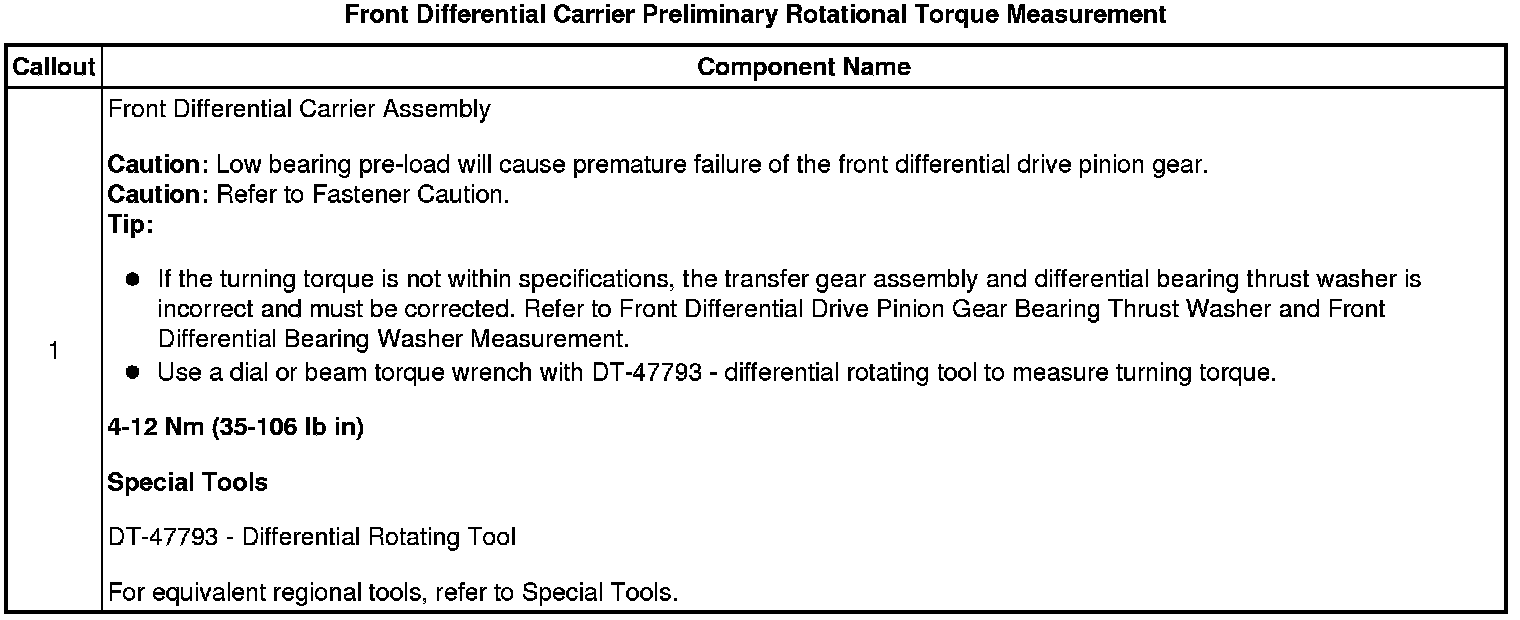 35. Front Differential Carrier Preliminary Rotational Torque Measurement