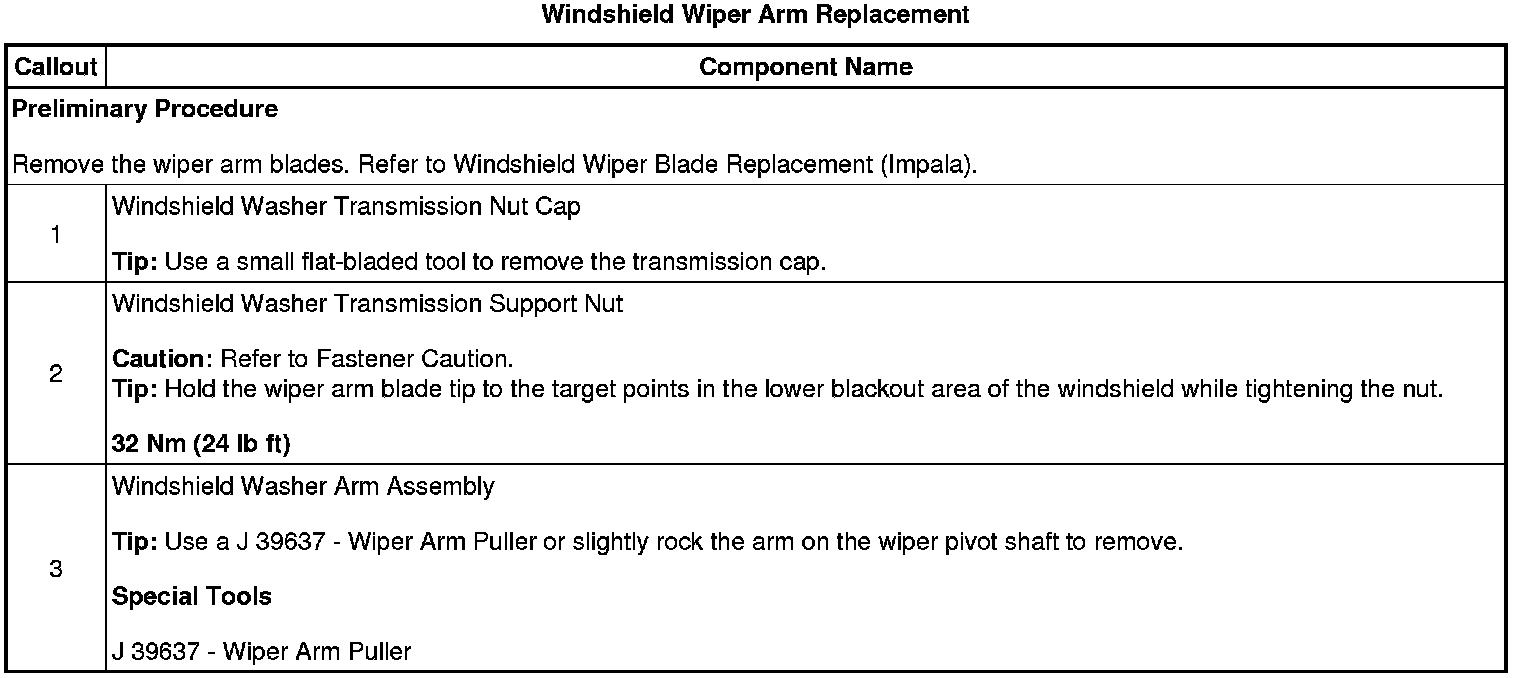 Wiper Arm: Service and Repair