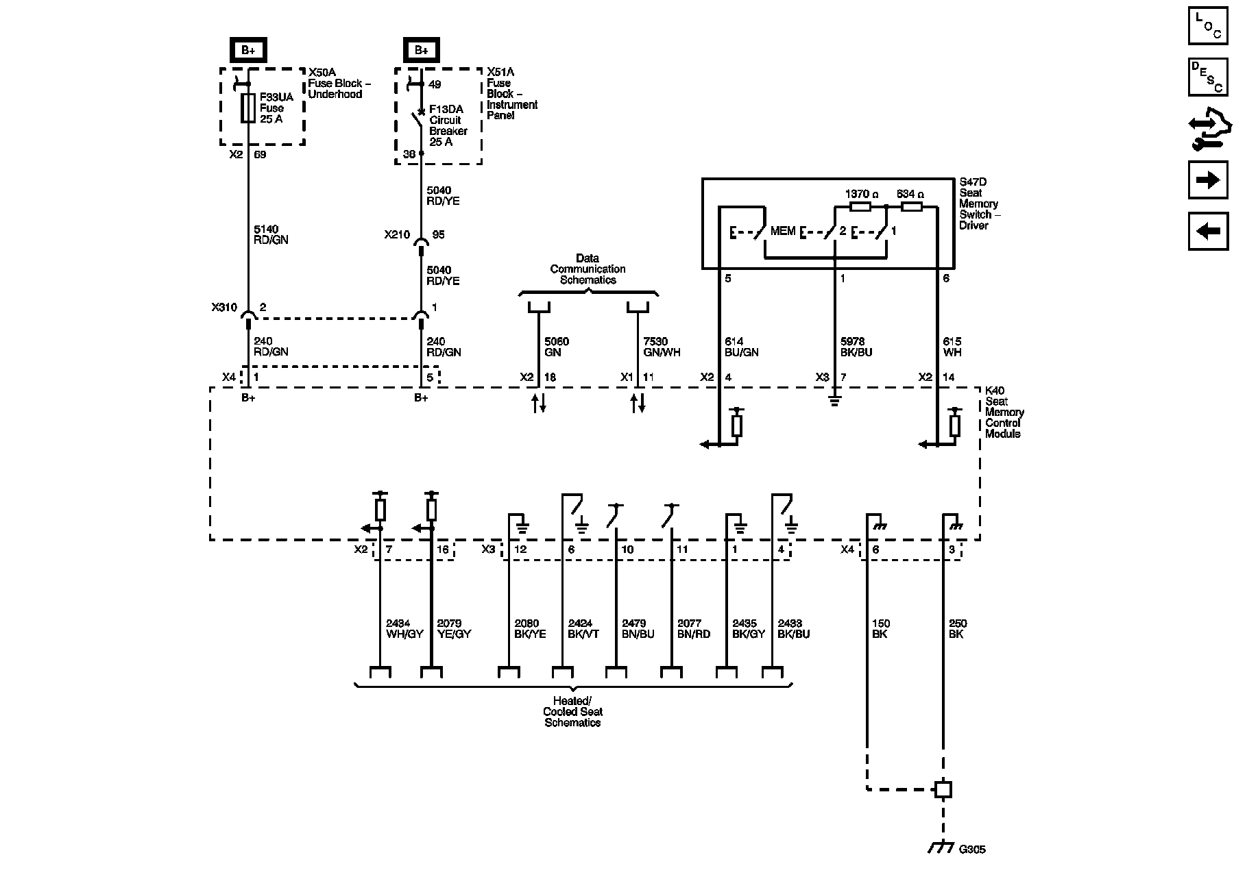 Power, Ground, Serial Data, and Seat Memory Switch (A45)