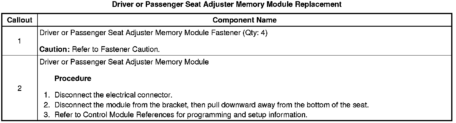 Driver or Passenger Seat Adjuster Memory Module Replacement