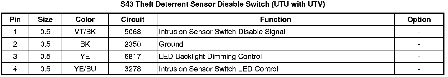S43 Theft Deterrent Sensor Disable Switch (UTU with UTV)