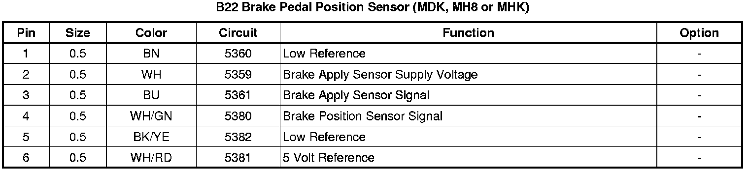 B22 Brake Pedal Position Sensor (MDK, MH8 or MHK)