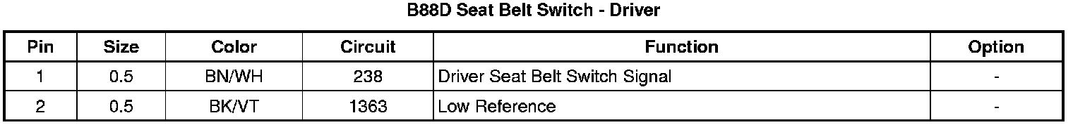 B88D Seat Belt Switch - Driver