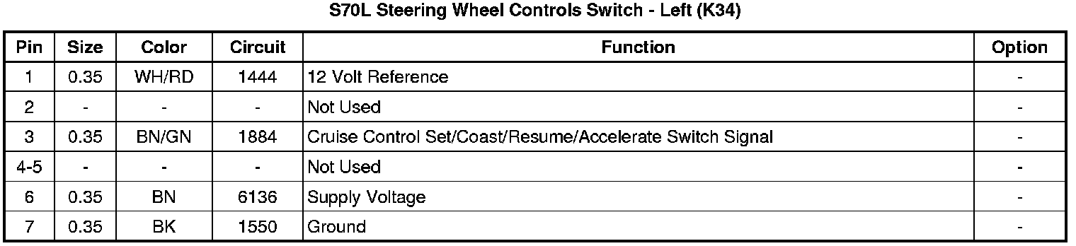 S70L Steering Wheel Controls Switch - Left (K34)