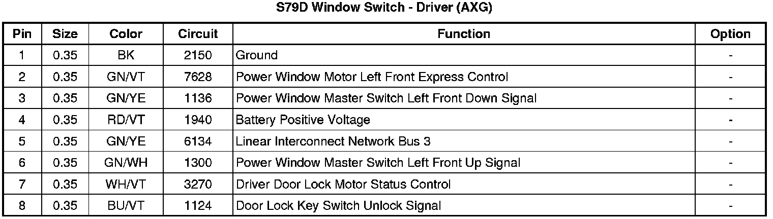 S79D Window Switch - Driver (AXG)