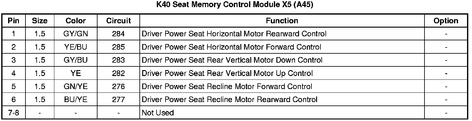 K40 Seat Memory