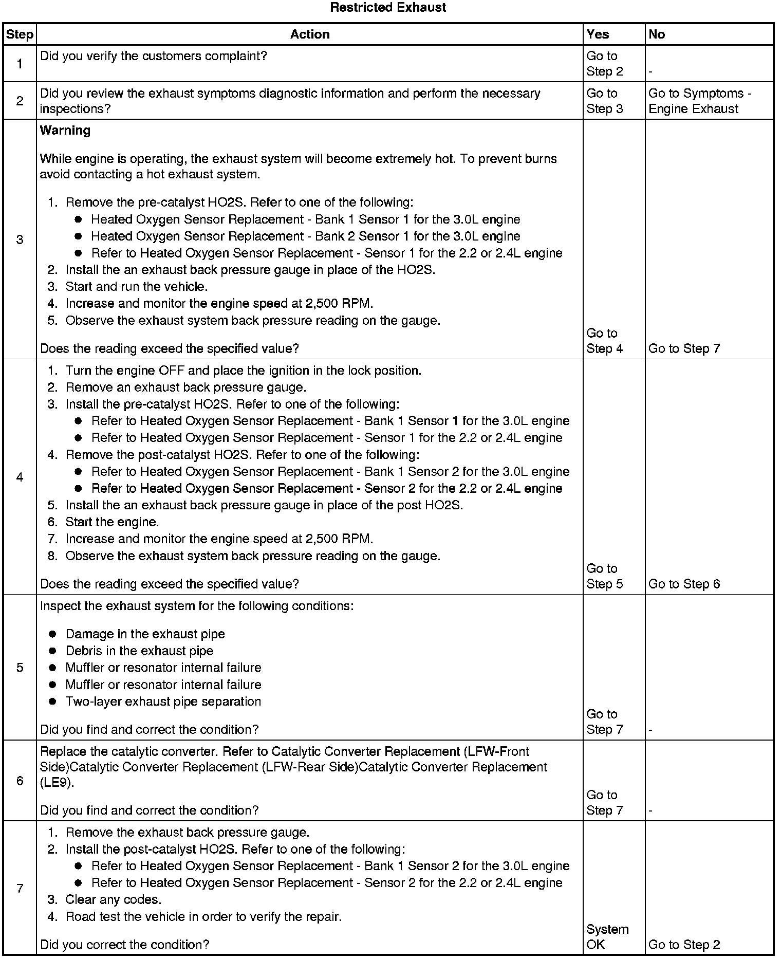 Removing the heated oxygen (HO2S) sensor may set a diagnostic trouble code (DTC). When finishing this diagnostic table, be sure to clear all codes.