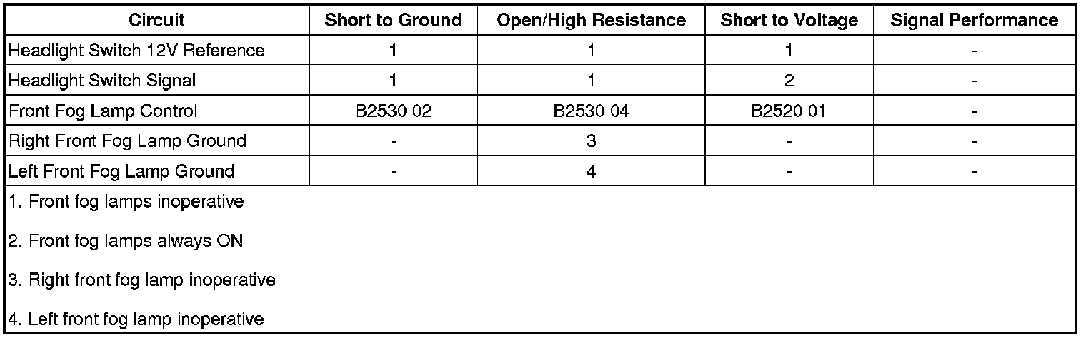 • If any front fog lamp does illuminate, test the signal circuit terminal 31 X1 for a short to voltage.
