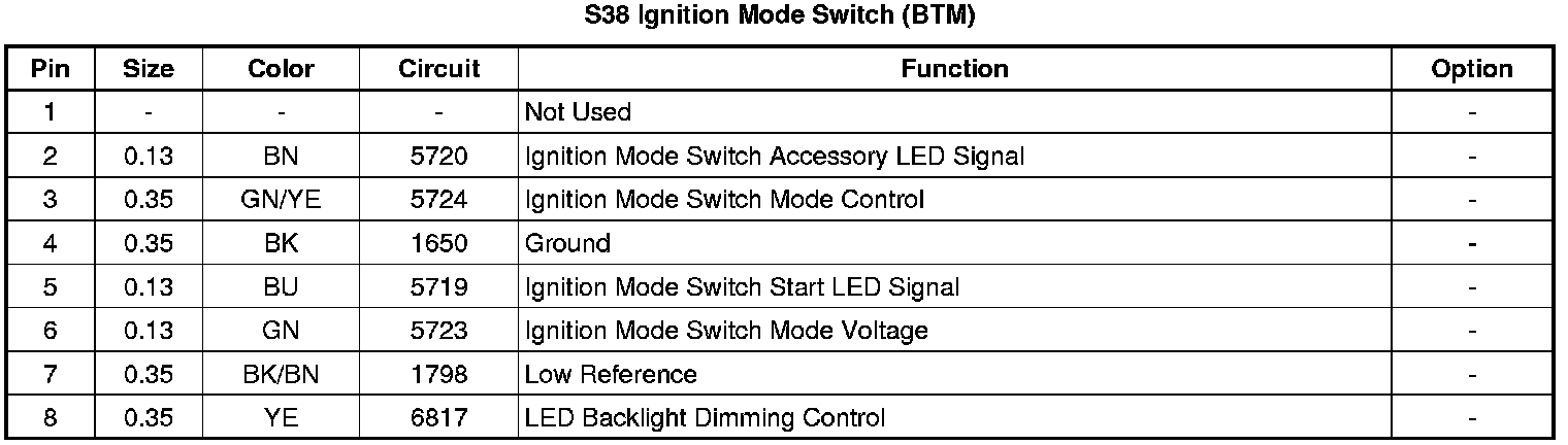 S38 Ignition Mode Switch (BTM)