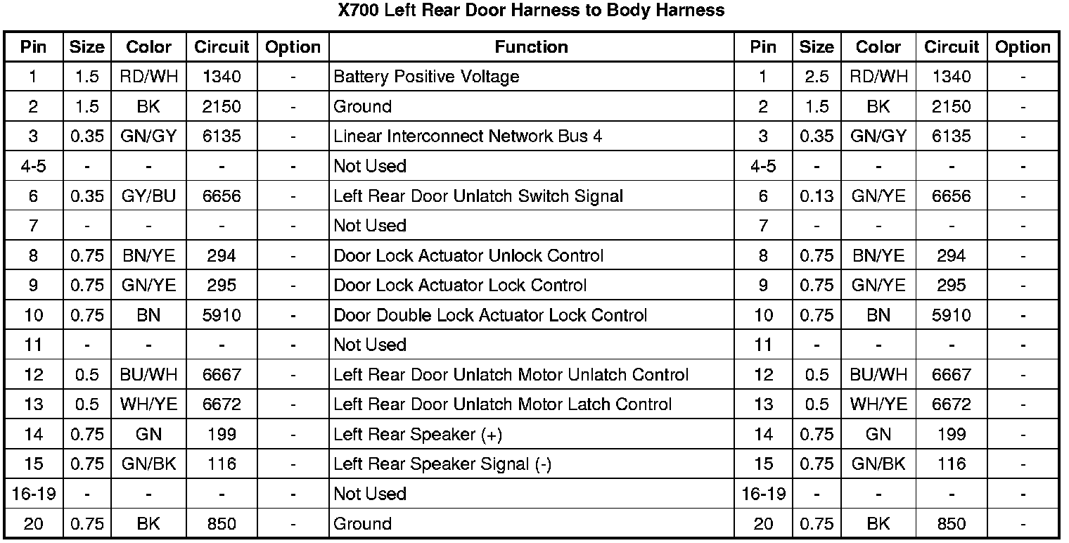 X700 Left Rear Door Harness to Body Harness