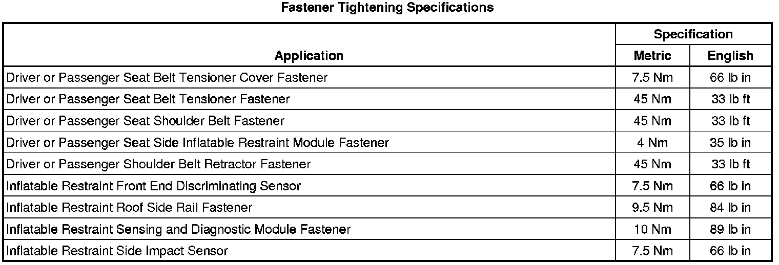 Fastener Tightening Specifications