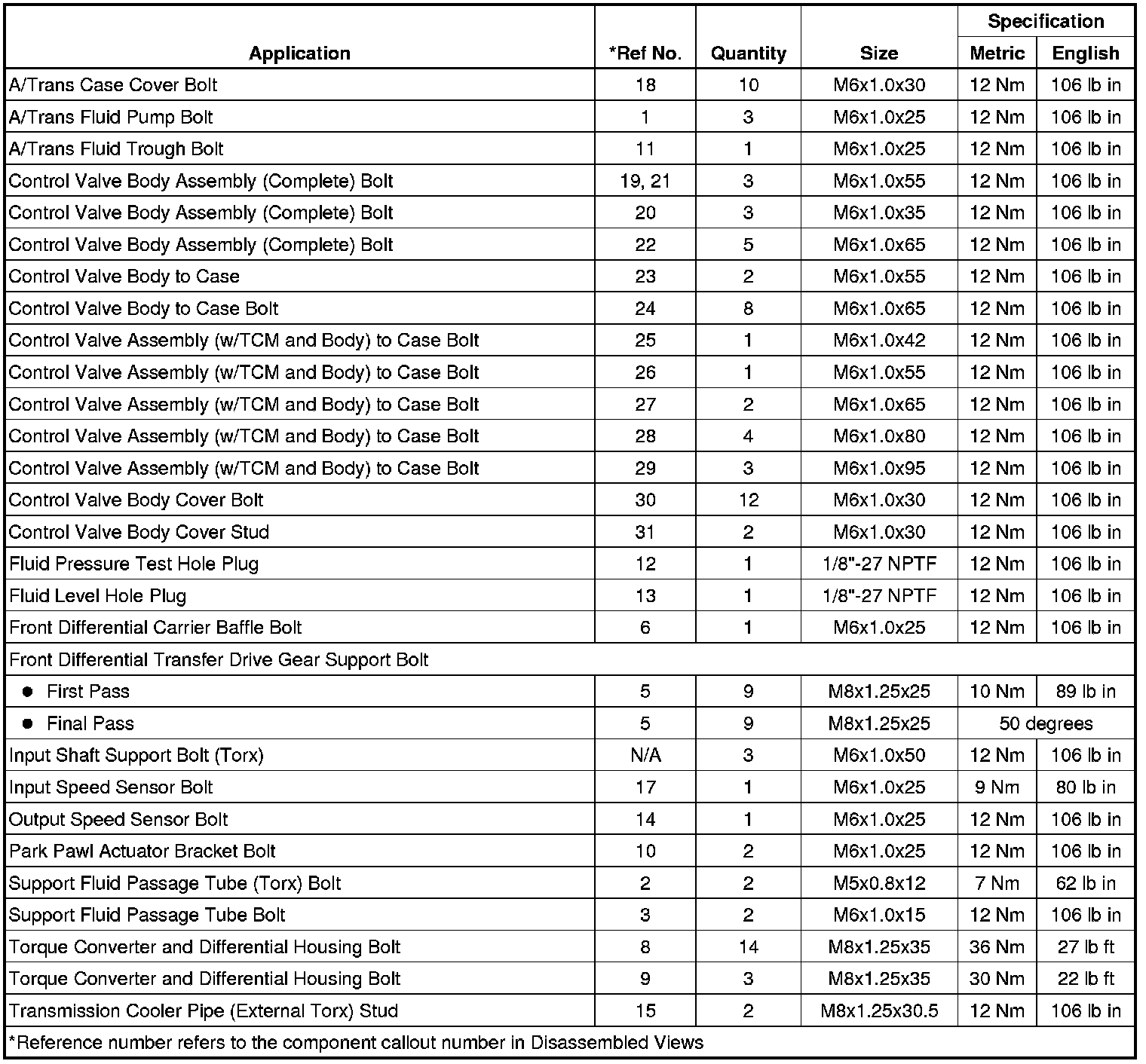 Fastener Tightening Specifications (Off Vehicle)