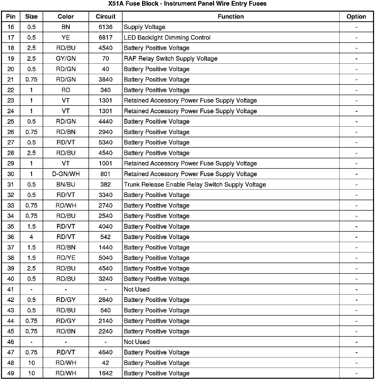 X51A Fuse Block - Instrument Panel Wire Entry Fuses