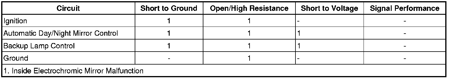 • If the mirror does not transition between the bright and dim states, refer to Inside Rearview Mirror Dimming Malfunction.