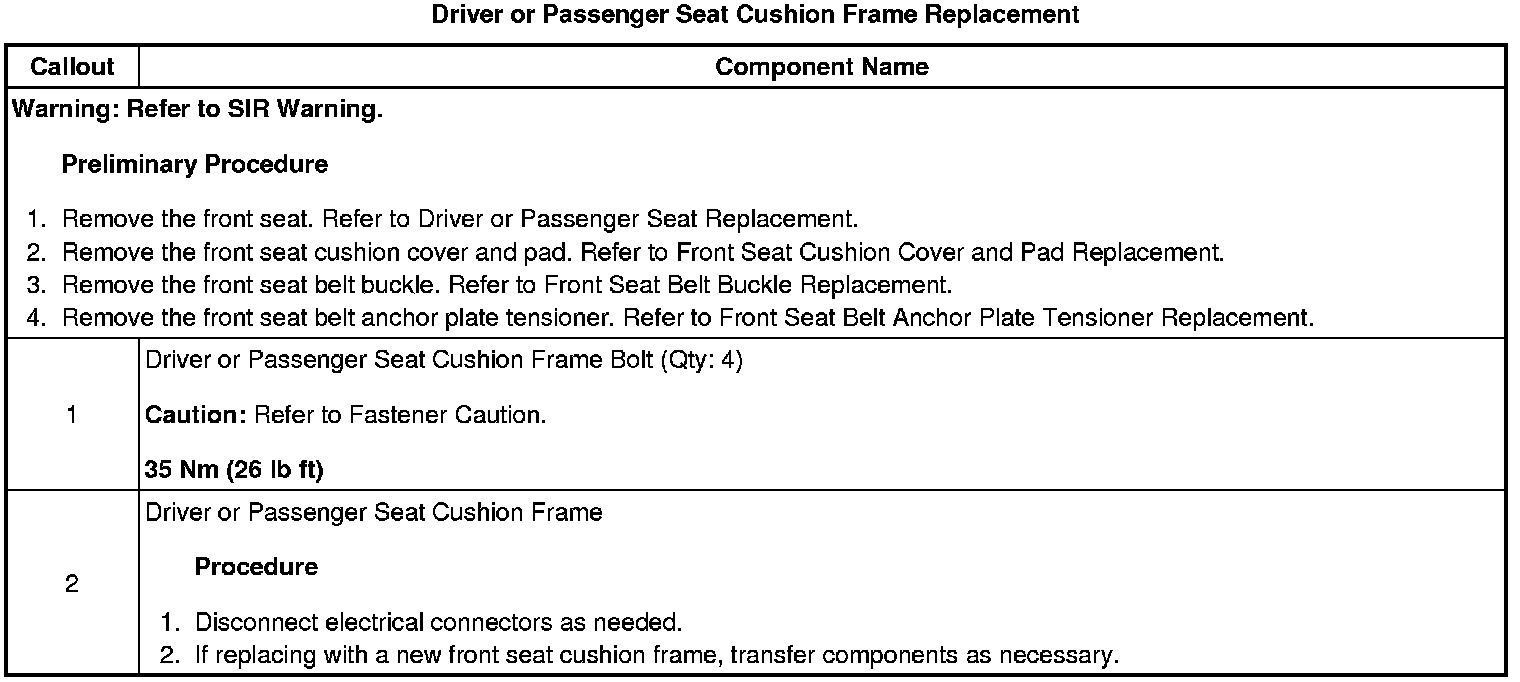 Driver or Passenger Seat Cushion Frame Replacement