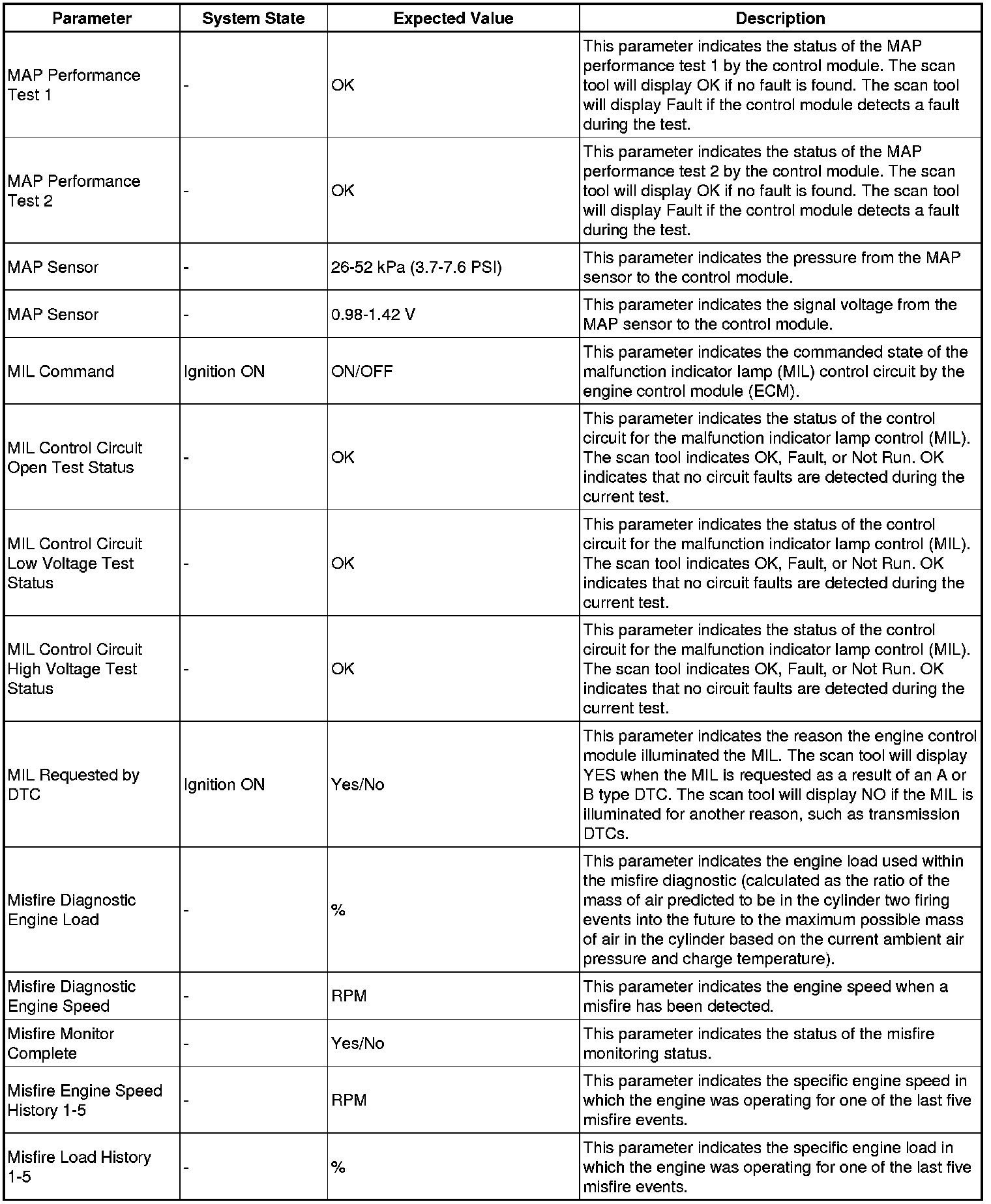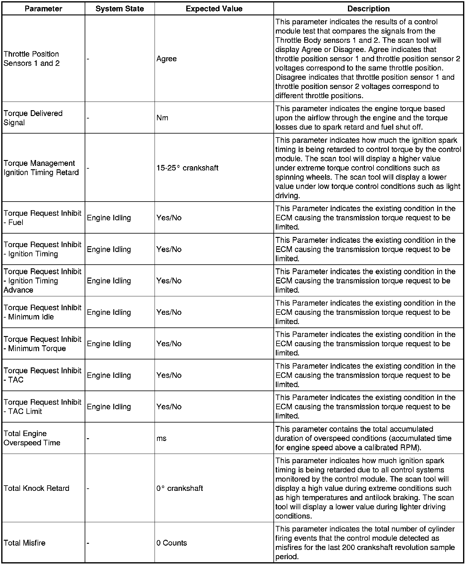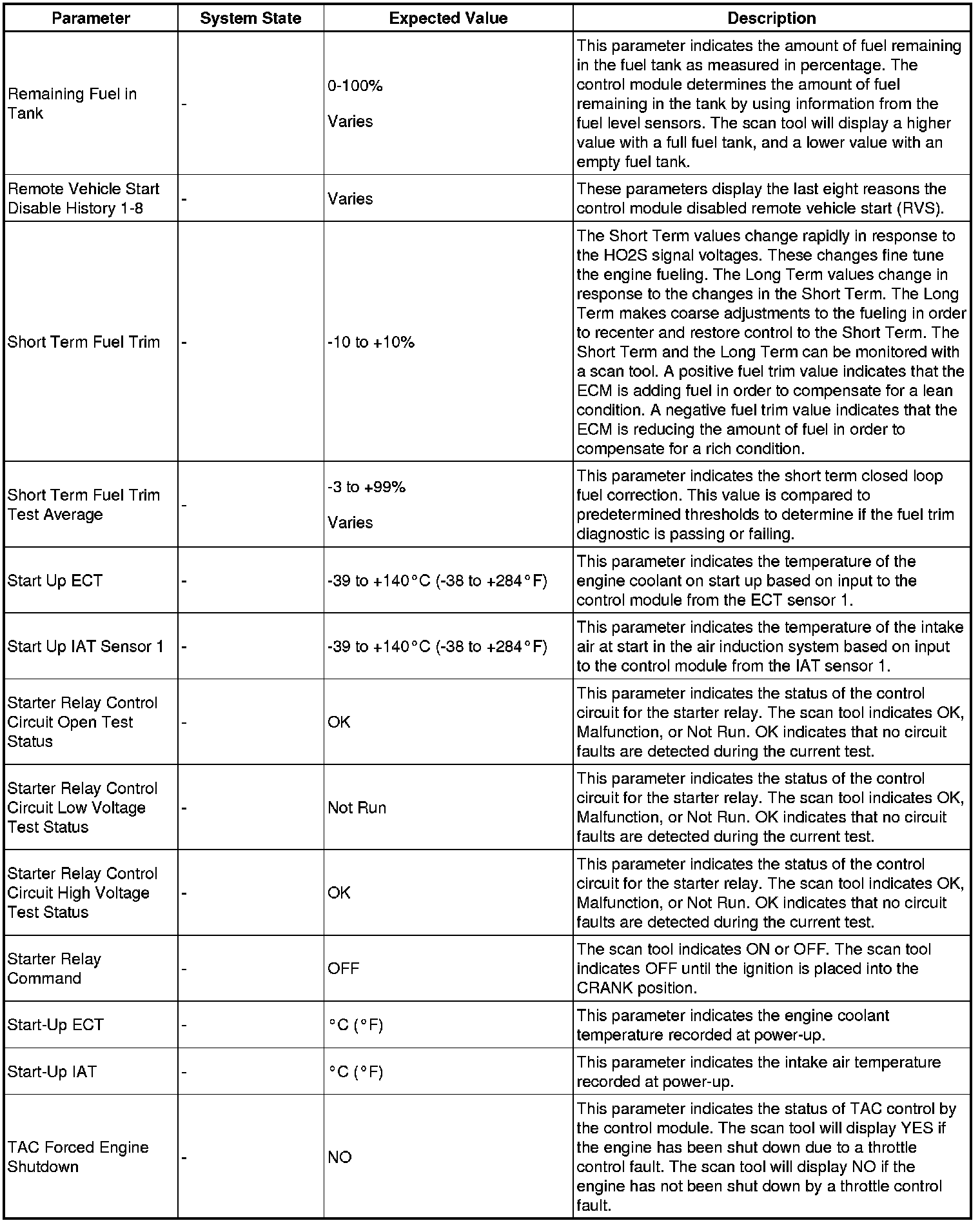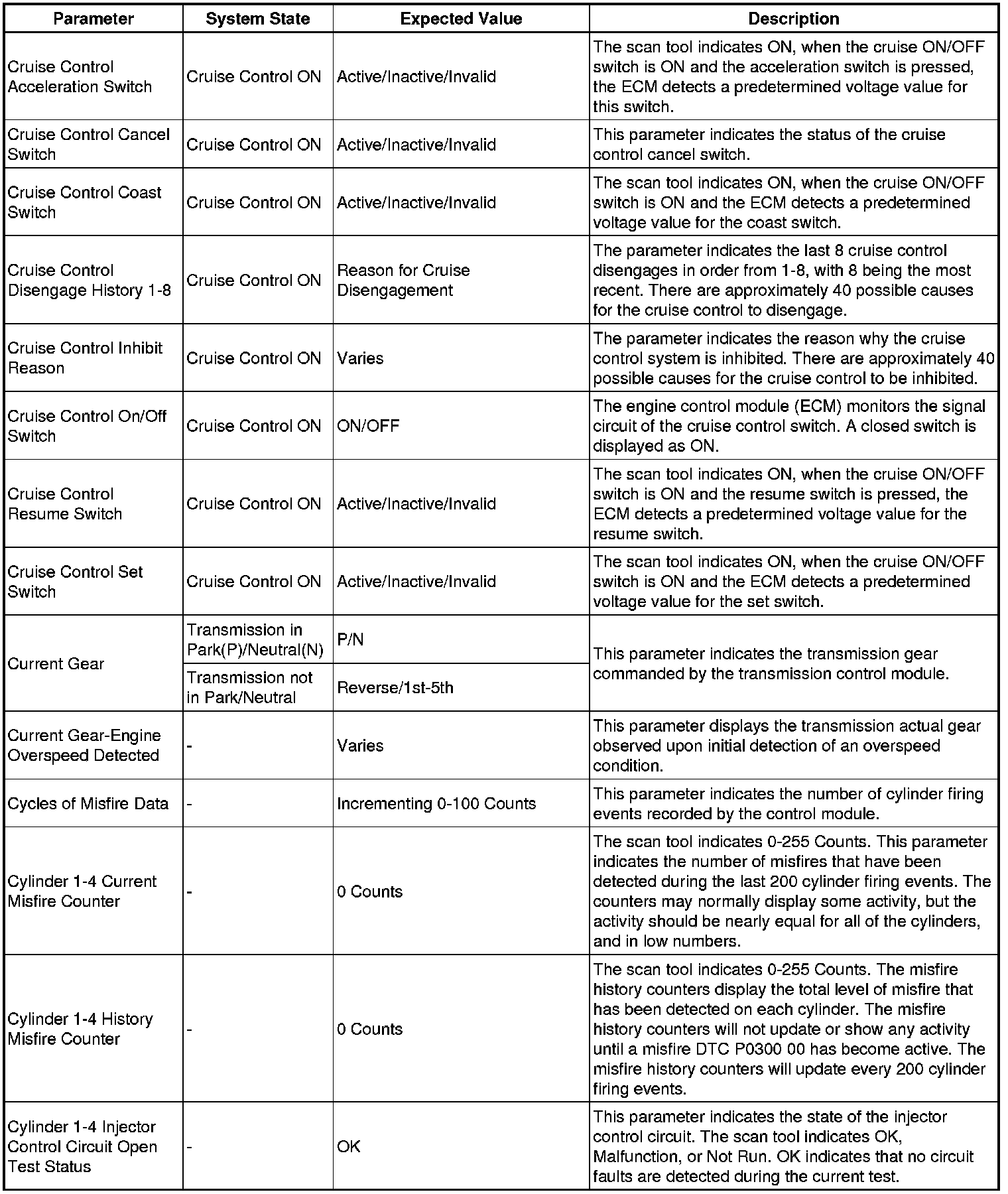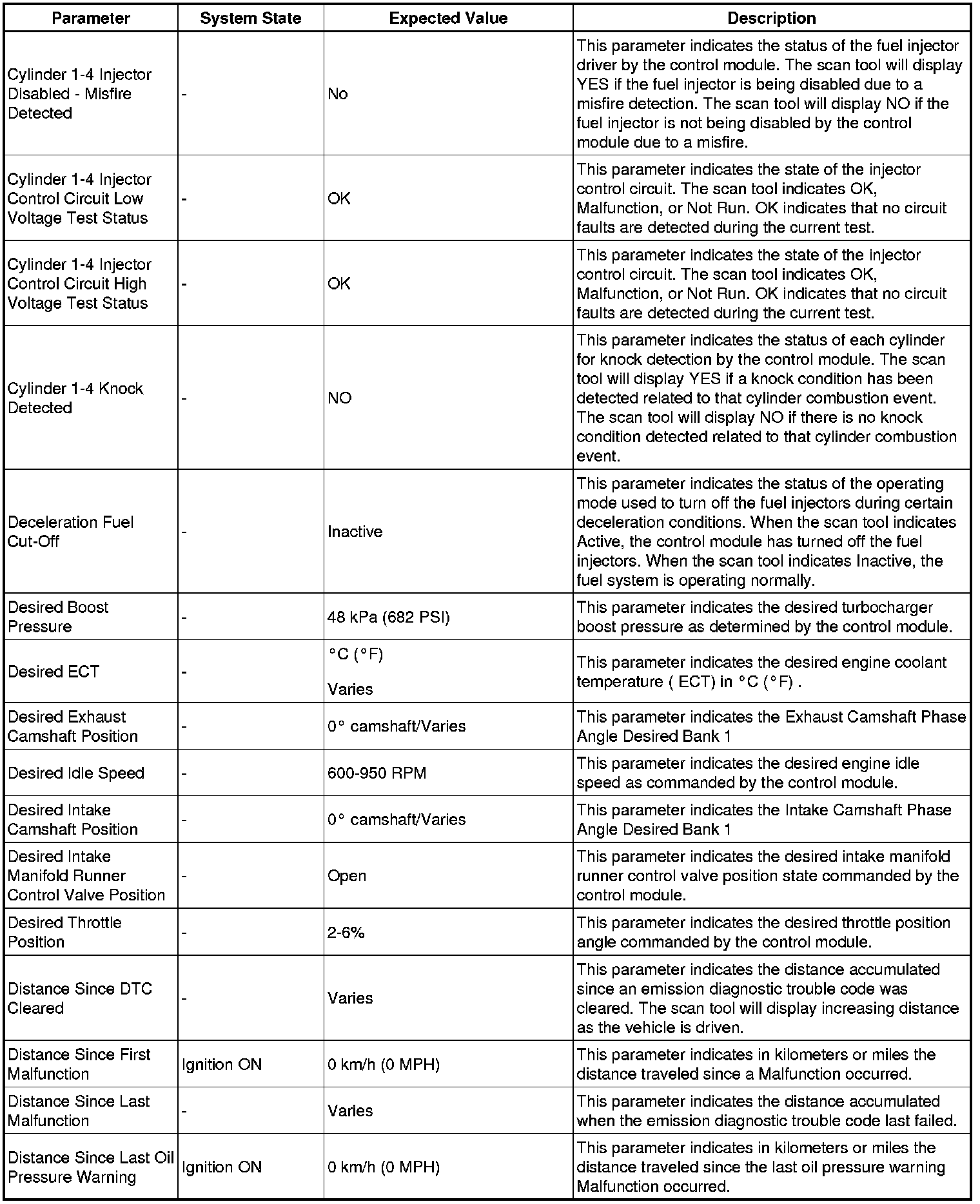 The engine control module scan tool data list contains all engine related parameters that are available on the scan tool. The list is arranged in alphabetical order. A given parameter may appear in any one of the data lists, and in some cases may appear more than once, or in more than one data list in order to group certain related parameters together.