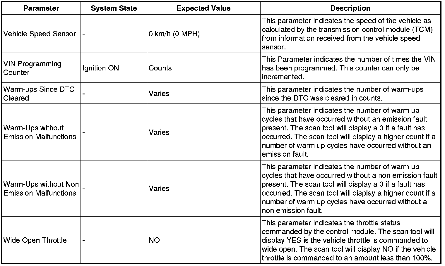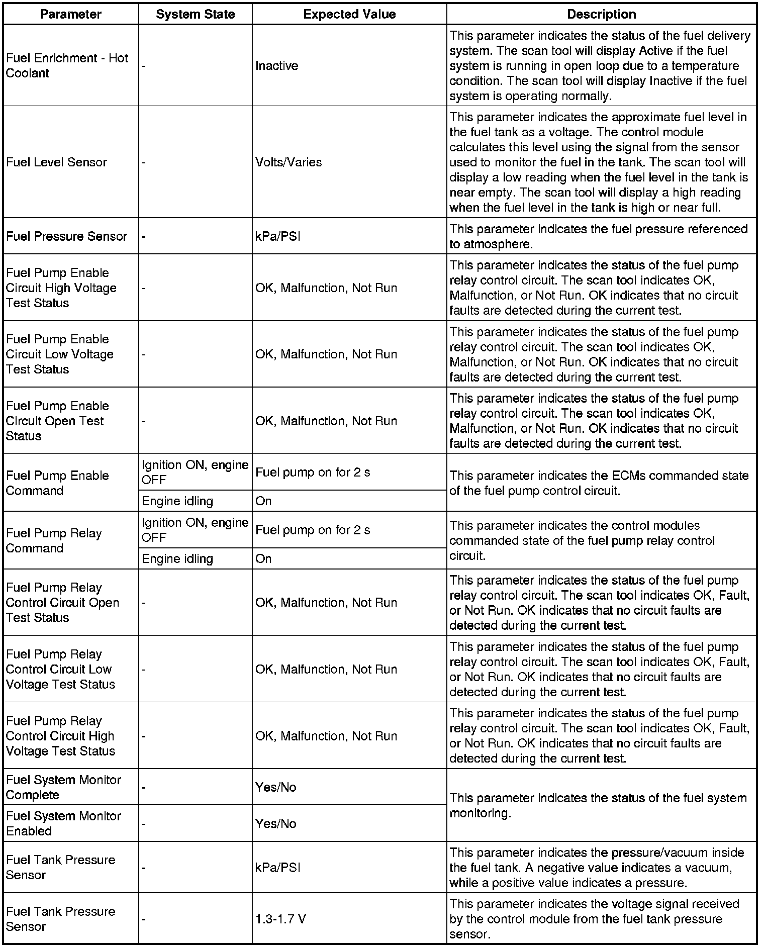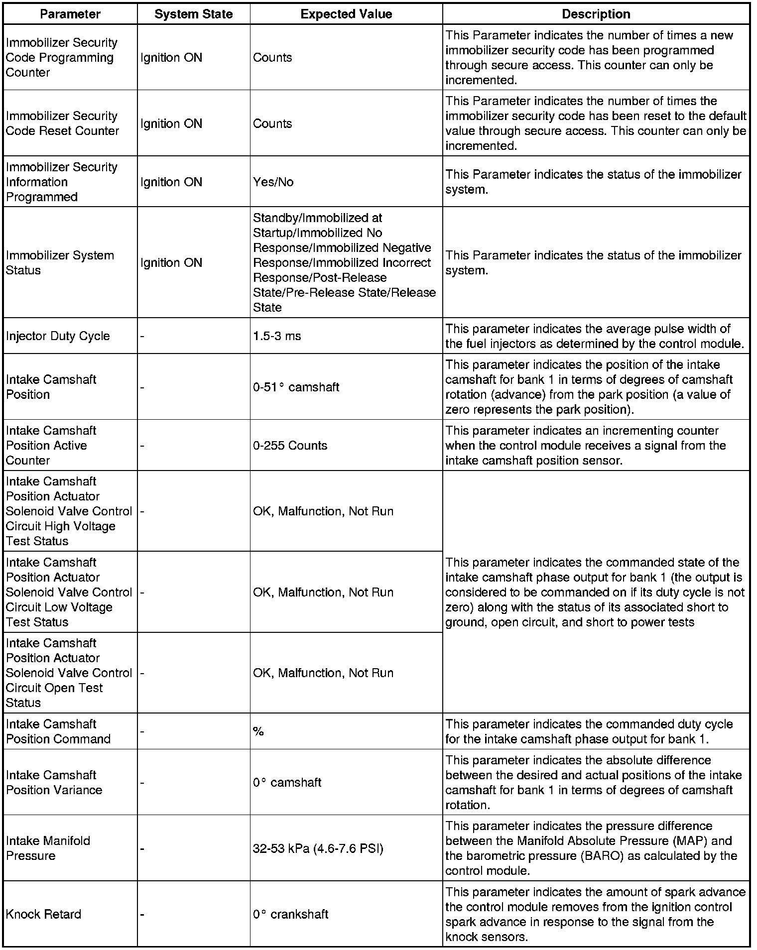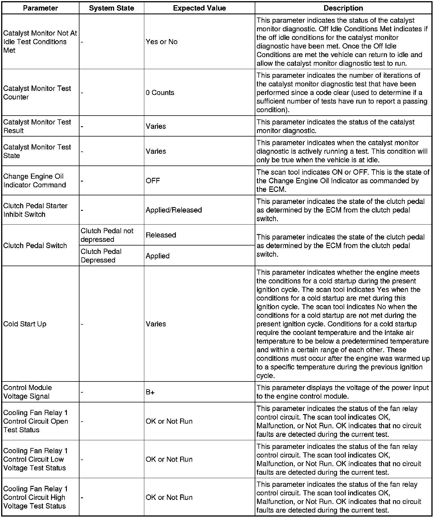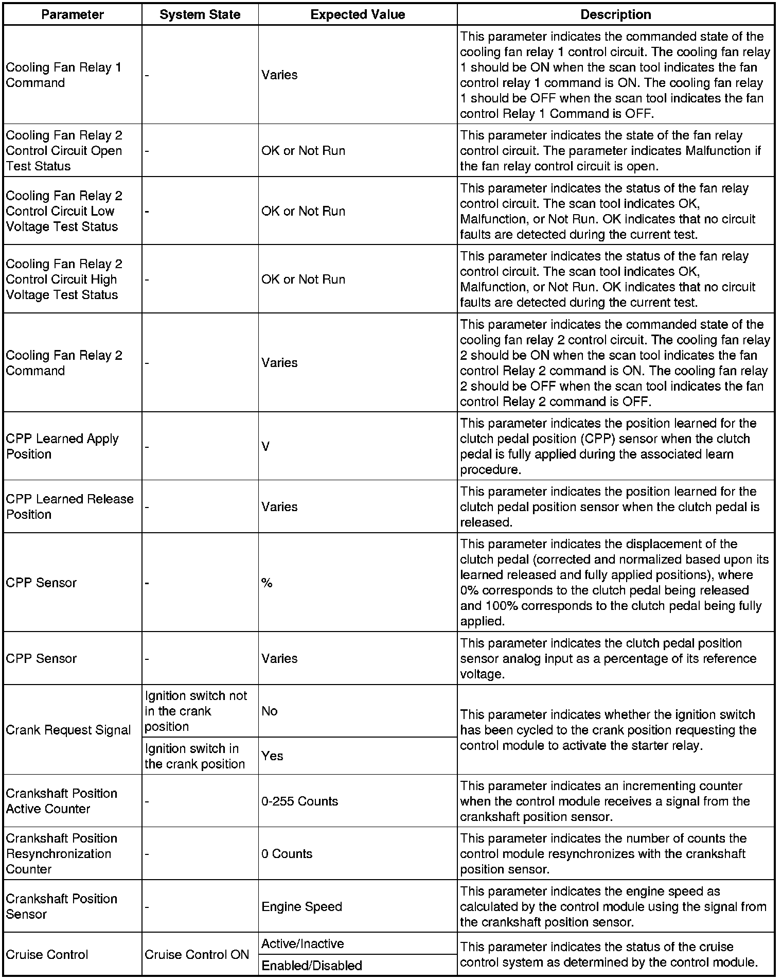 The engine control module scan tool data list contains all engine related parameters that are available on the scan tool. The list is arranged in alphabetical order. A given parameter may appear in any one of the data lists, and in some cases may appear more than once, or in more than one data list in order to group certain related parameters together.