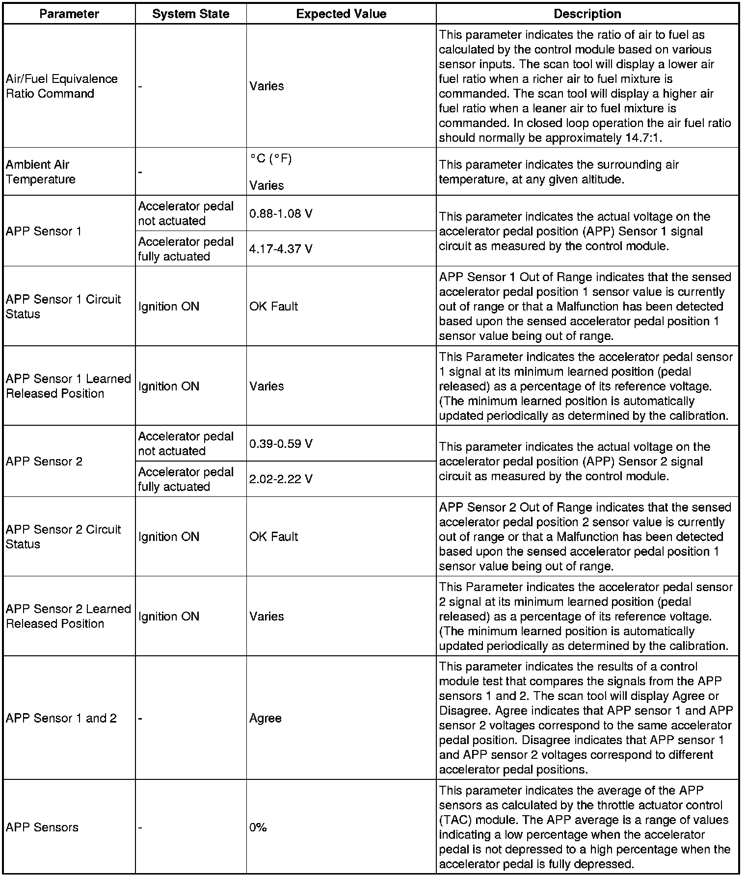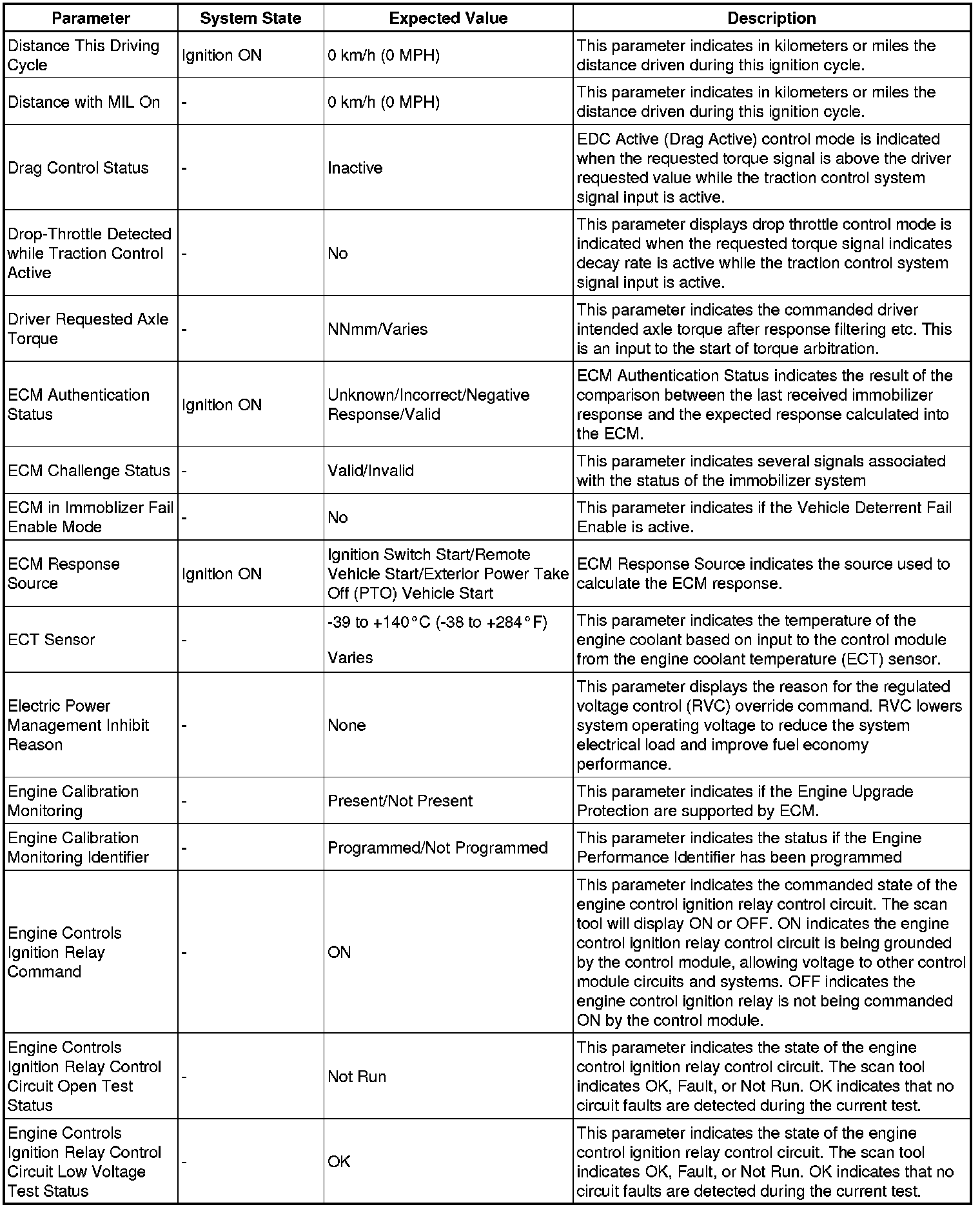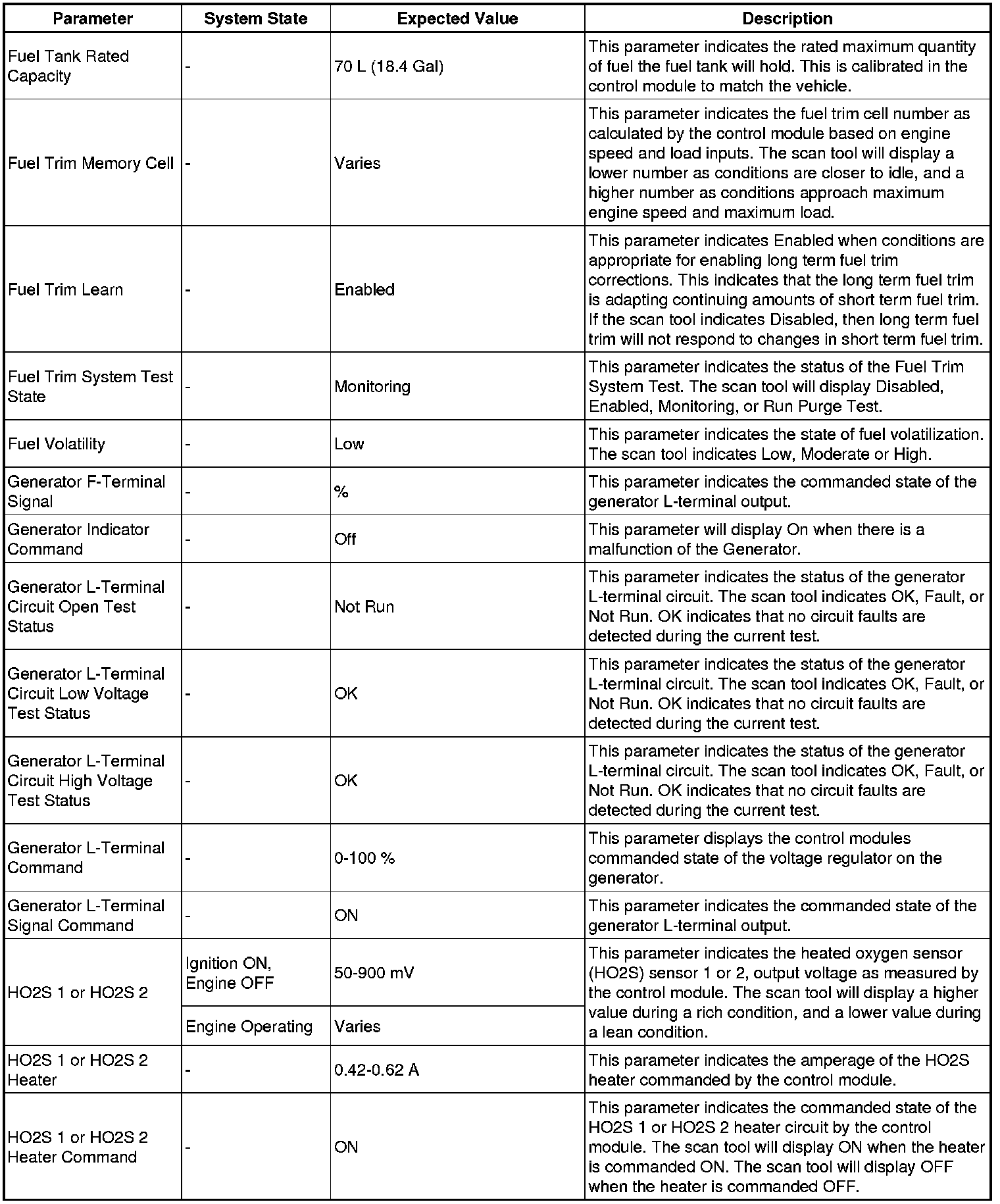 Only the parameters listed below are referenced in this service manual for use in diagnosis. If all values are within the typical range described below, refer to Symptoms - Engine Controls Symptoms - Engine Controls (LE9) for engine diagnosis.