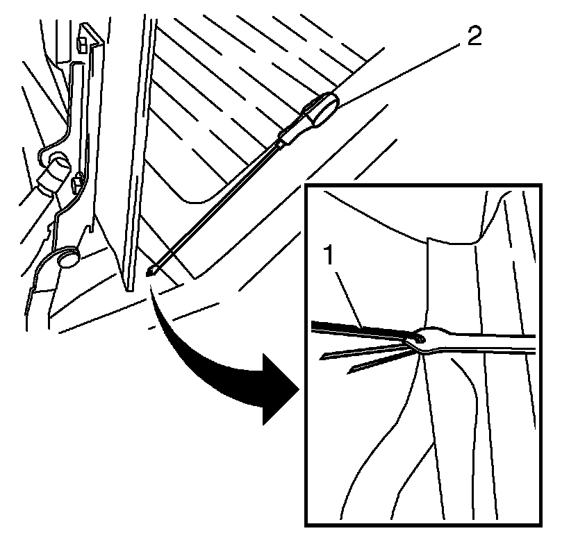 Twisting the tip of the awl (1) when inserting it will damage the rear window replacement.