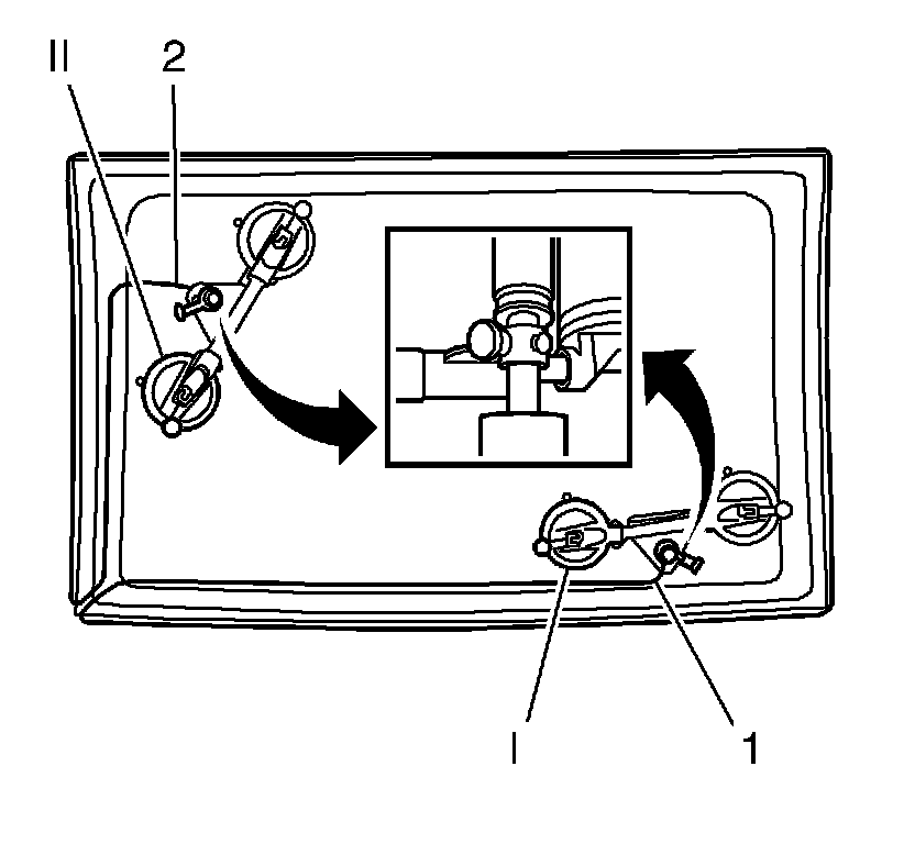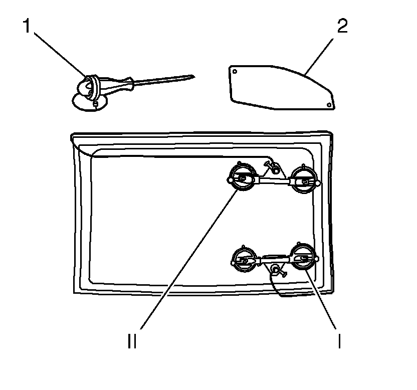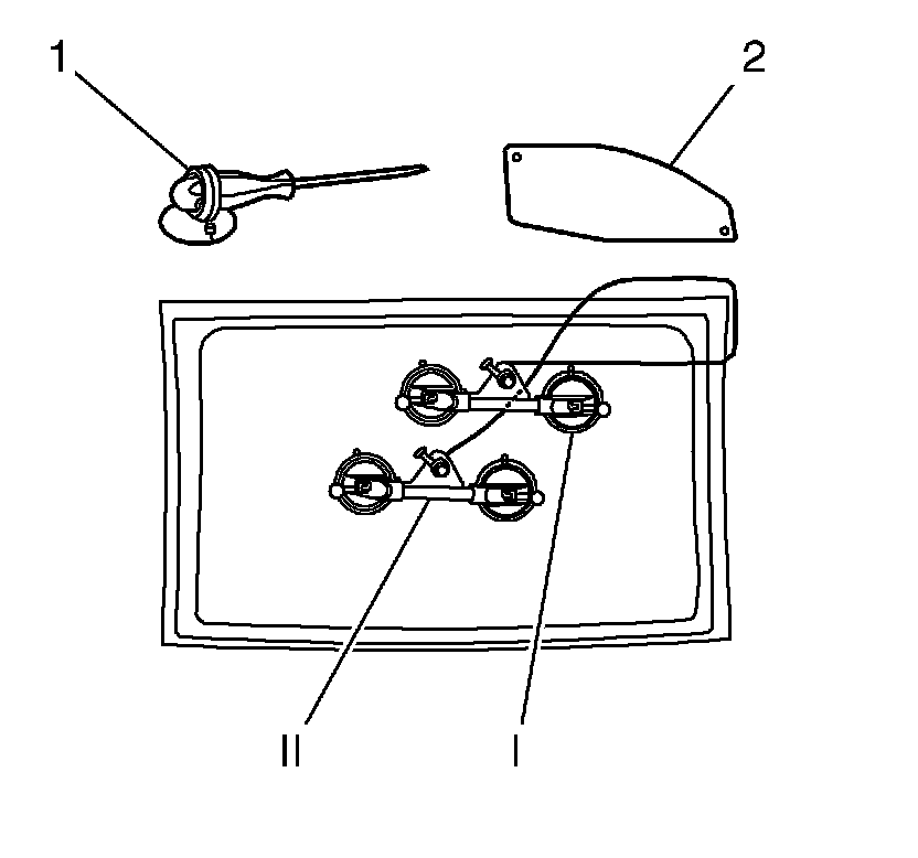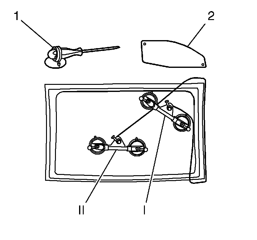 For a rational rear window replacement cutting operation, the winches (I, II) must be positioned on the rear window replacement in the order shown.