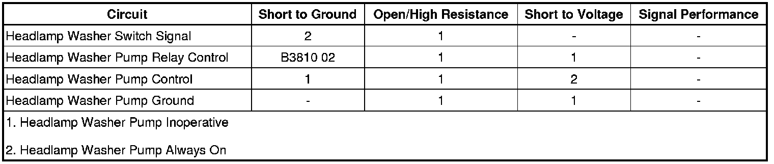 3. If the switch input to the BCM functions normal, refer to Headlamp Washer Pump Circuit Test.