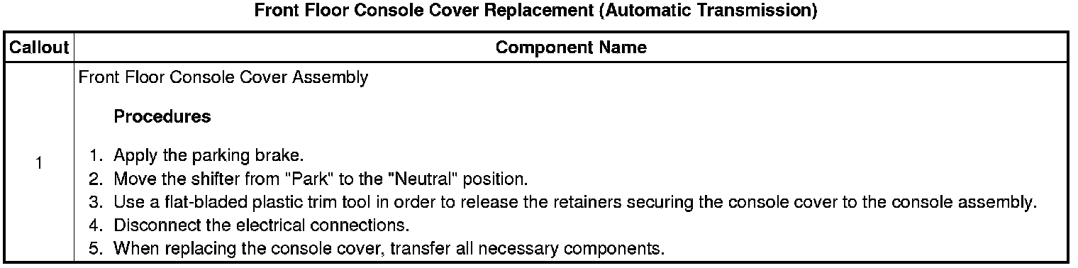 Front Floor Console Cover Replacement (Automatic Transmission)