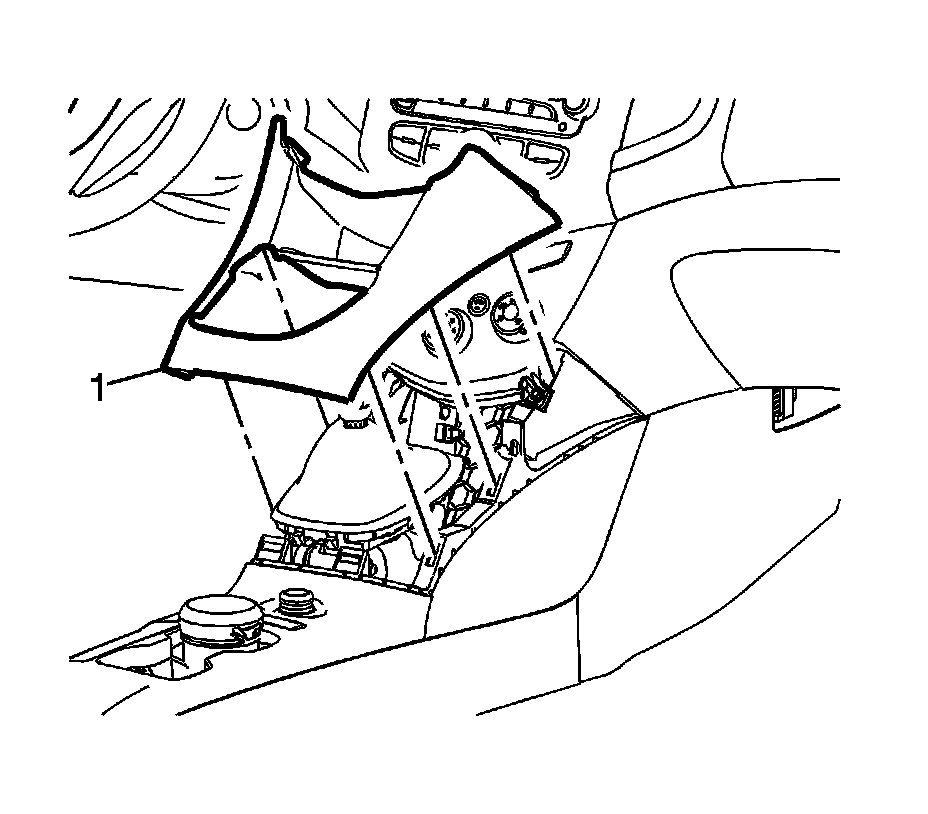 1. Use a flat bladed plastic trim tool in order to release the retainers securing the console cover (1) to the console assembly.