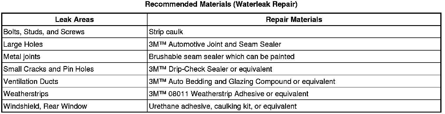 Recommended Materials (Waterleak Repair)