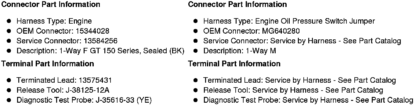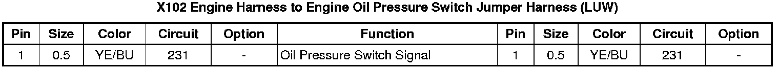 X102 Engine Harness to Engine Oil Pressure Switch Jumper Harness (LUW)