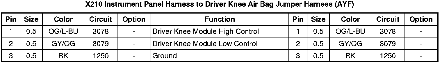 X210 Instrument Panel Harness to Driver Knee