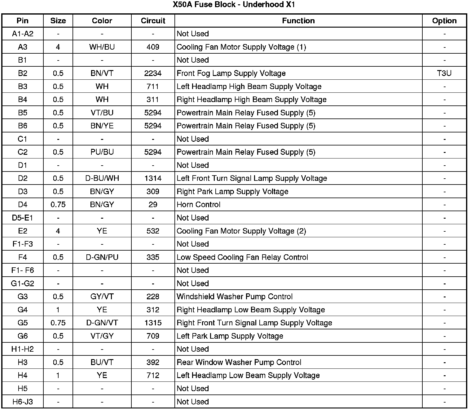 X50A Fuse Block - Underhood X1