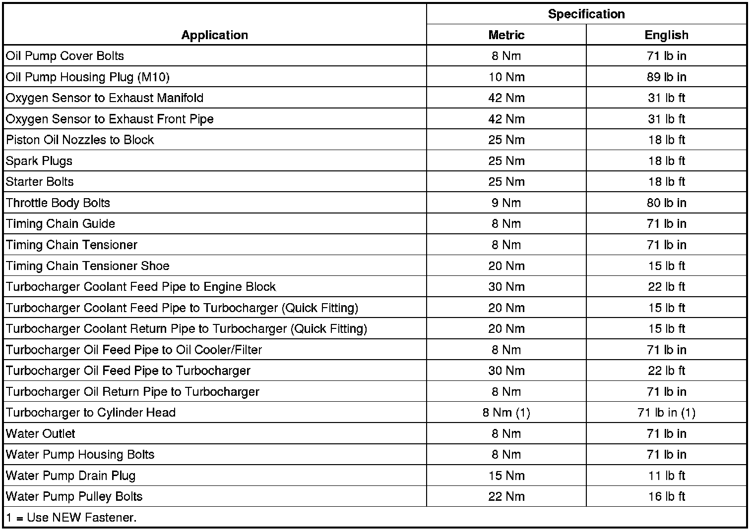 Fastener Tightening Specifications (1.4L LUH, LUJ and LUV)