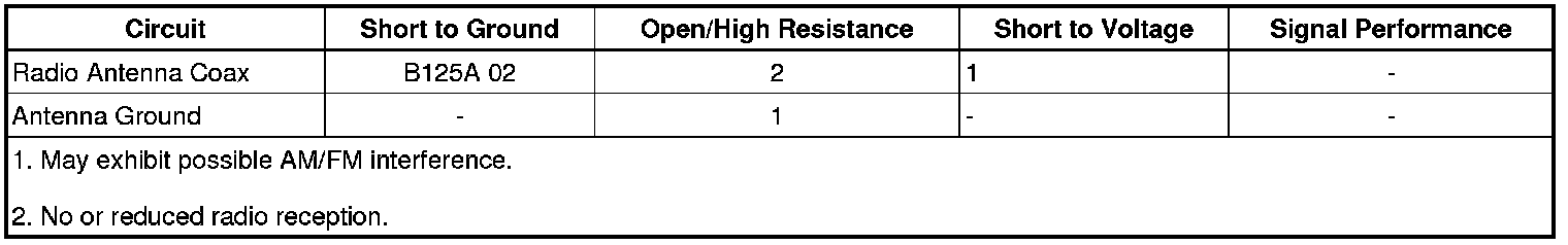 The AM/FM radio antenna is located on the roof of the vehicle. The radio antenna is enabled when the radio is turned on. The radio supplies battery voltage to the antenna via the coax cable. An internal amplifier amplifies the radio signals from the antenna and transmits them to the radio.