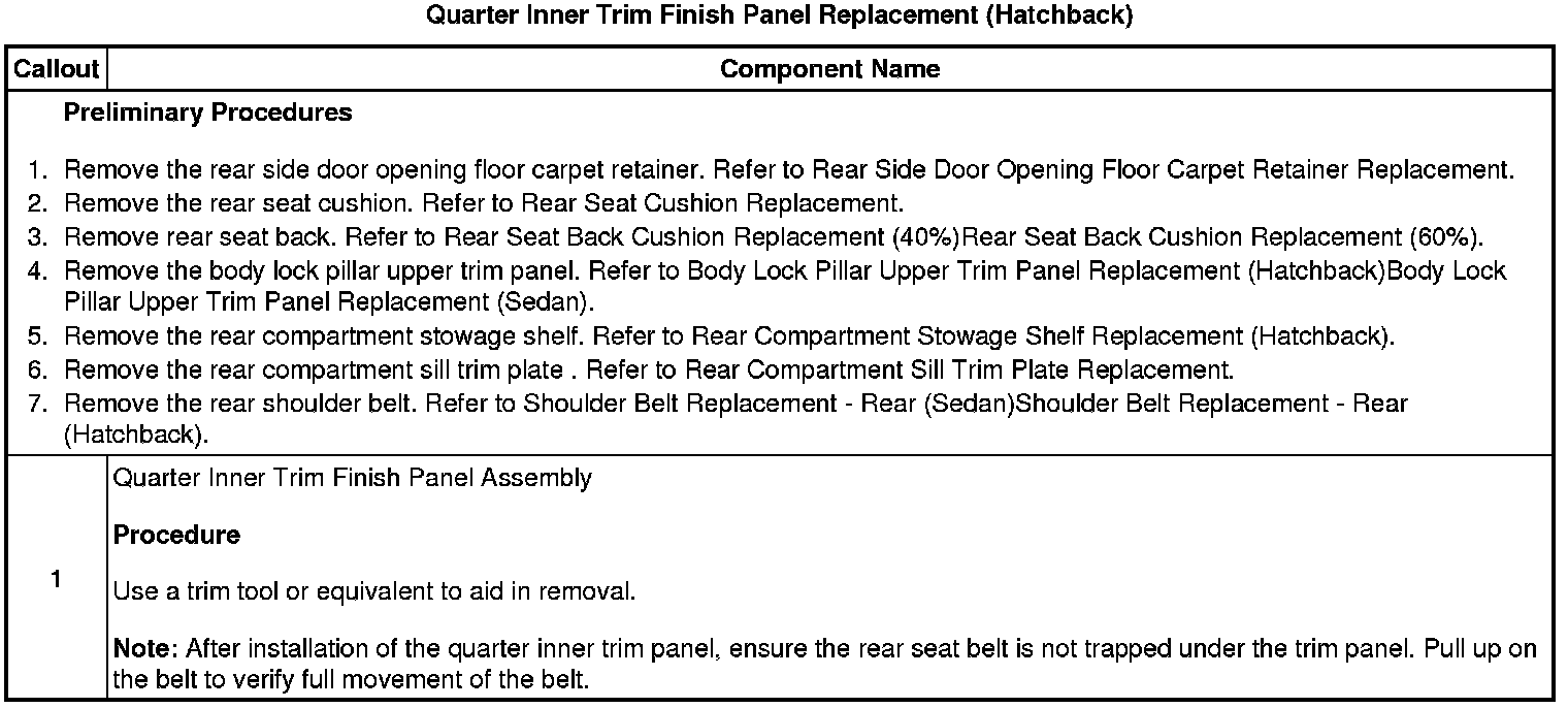 Quarter Inner Trim Finish Panel Replacement (Hatchback)