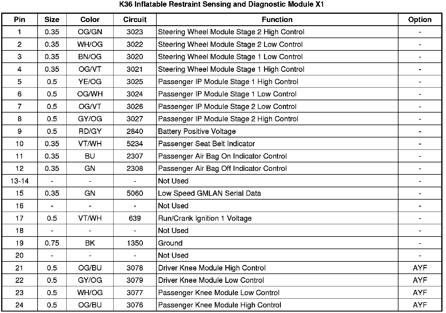 K36 Inflatable Restraint Sensing and Diagnostic Module X1