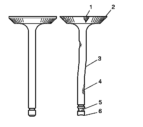 1. Inspect the valve for damage from the head to tip for the following conditions: