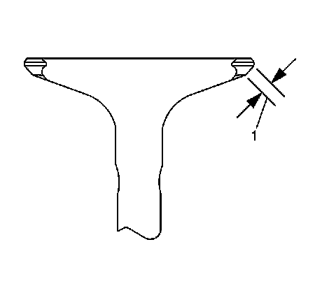 4. If the original valve is being used, grind the valve to the specifications, refer to Engine Mechanical Specifications Service Limits & General Specifications. Measure the valve margin again after grinding using the Valve Margin Measurement Procedure. Replace the valve if the margin is out of specification. New valves do not require grinding.