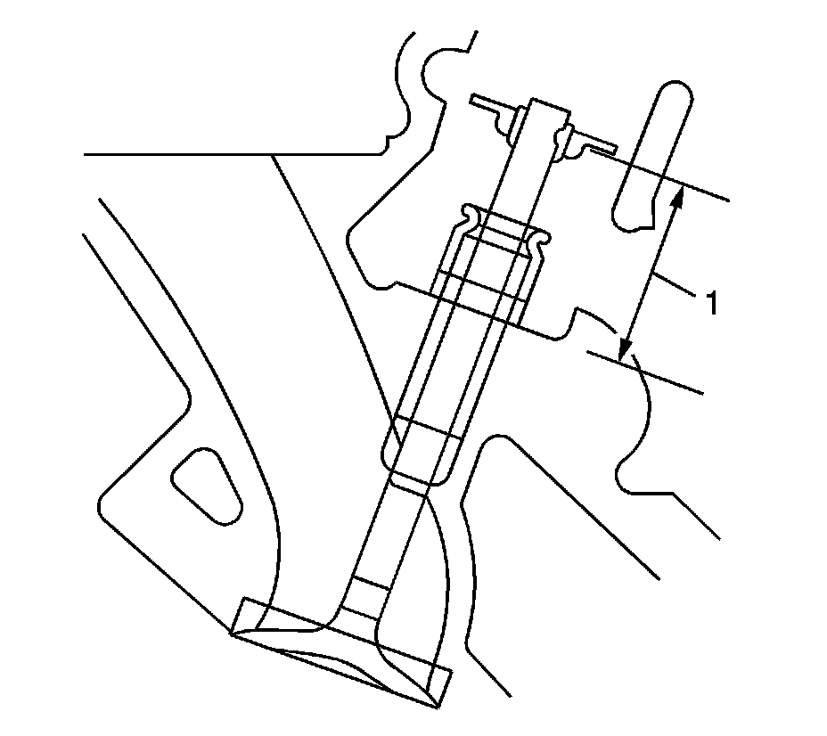 5. Measure the distance (1) between the cylinder head to the bottom of the valve spring retainer. Refer to Engine Mechanical Specifications Service Limits & General Specifications.
