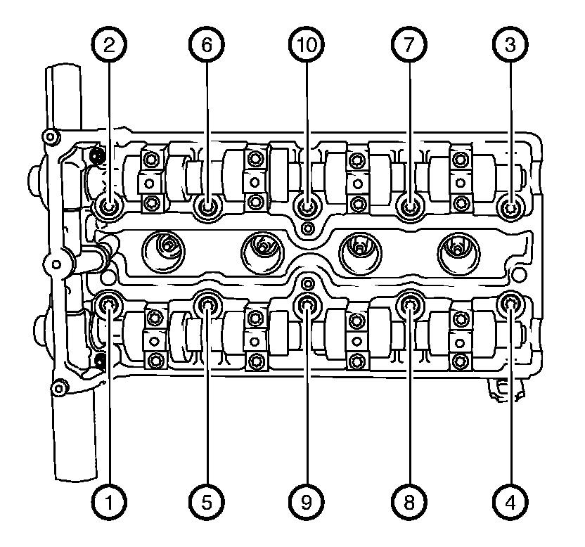 1. Remove the 10 cylinder head bolts in sequence as shown.