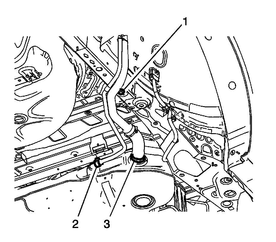 6. Loosen the filler pipe hose clamp (3).