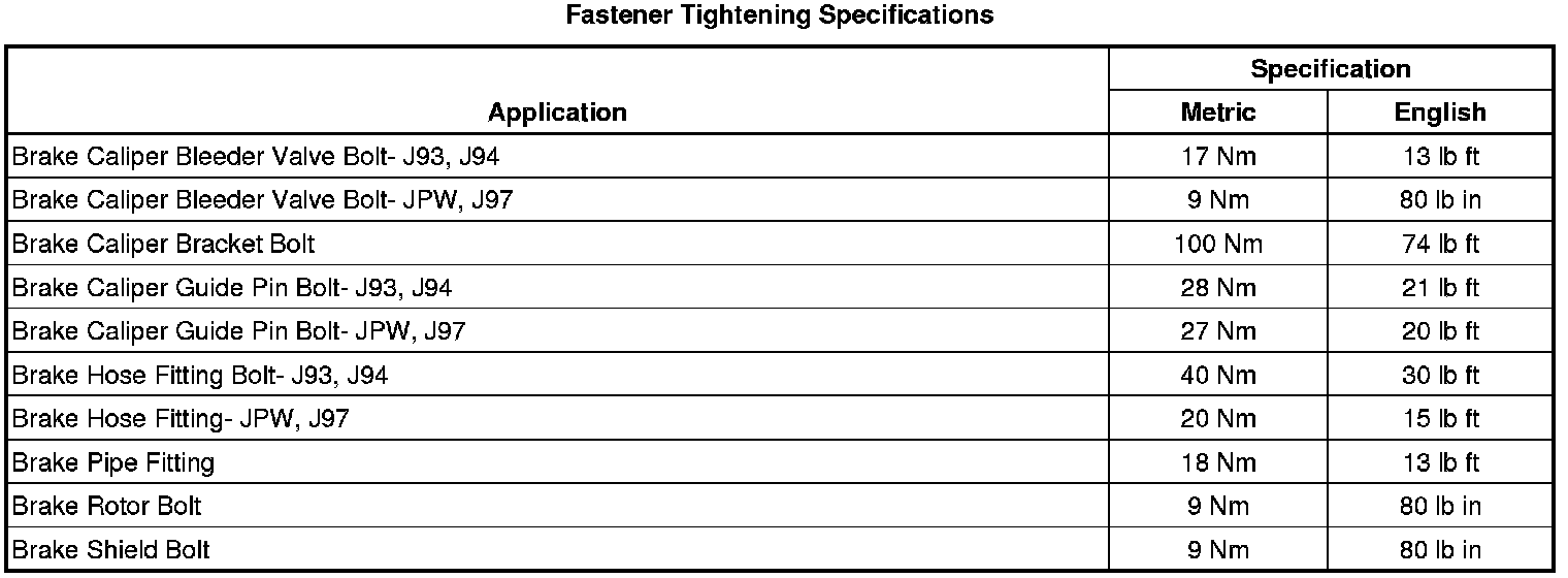 Fastener Tightening Specifications