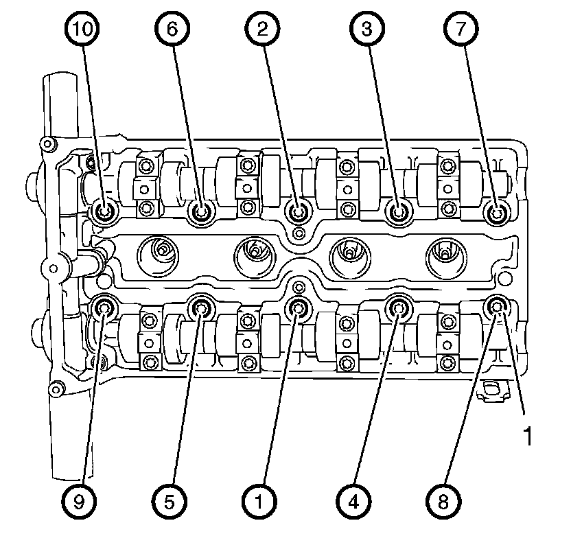 Camshaft Bearing Caps in sequence (2, 3, 1, 4) 8 Nm (71 lb in)