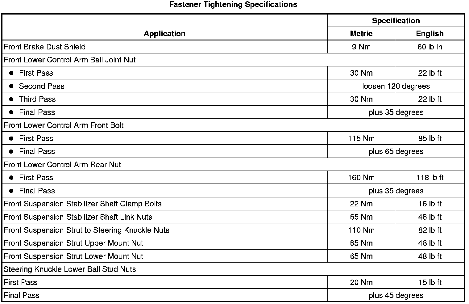 Fastener Tightening Specifications