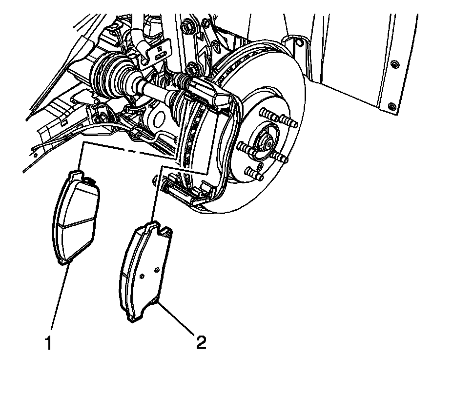 6. Remove the outer brake pad (2).