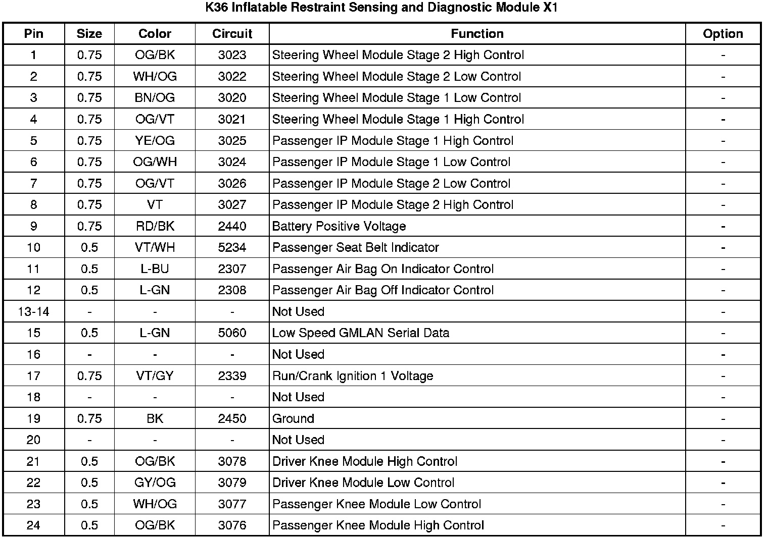 K36 Inflatable Restraint Sensing and Diagnostic Module X1