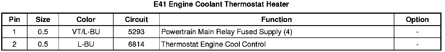 E41 Engine Coolant Thermostat Heater