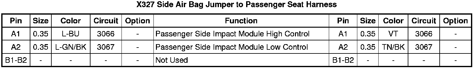 X327 Side Air Bag Jumper to Passenger Seat Harness