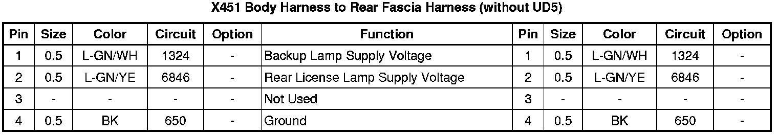 X451 Body Harness to Rear Fascia Harness (without UD5)